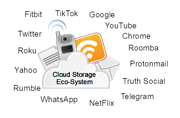 The application developer/creator/owner stores and owns the data coming from the application or device. The data lives in a Big Data system along with other users data. Big target for hackers. You do not have the ability allow, restrict, move, control or delete any data once it is in their system. They can shutdown your account shadowban you, censor, you sell your data.
